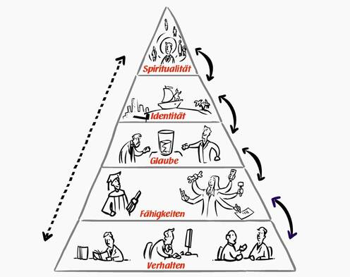 Anhand des auf besondere Weise interpretierten NLP-Modells der logischen Ebenen von Robert Dilts lässt sich beschreiben, auf welchen Ebenen sich auf dem Weg in die Selbstständigkeit etwas verändert. Mit der Reflexion der eigenen persönlichen und beruflichen Situation werden Prioritäten und Ansatzpunkte zum Handeln deutlich, um langfristig unternehmerisch erfolgreich zu sein.